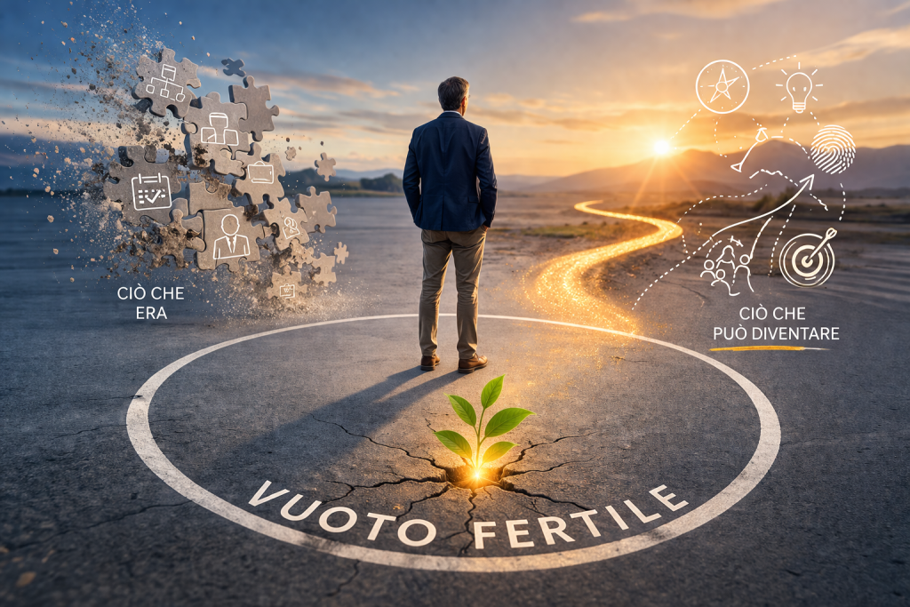 Il vuoto fertile è la fase che si apre quando termina un assetto professionale consolidato ma non è ancora emersa una nuova identità operativa. Può nascere da: